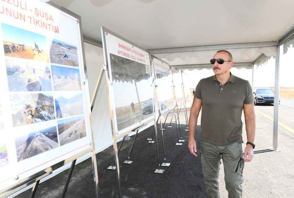 Azərbaycan Respublikasının Prezidenti İlham Əliyev avqustun 29-da Əhmədbəyli-Füzuli-Şuşa Zəfər yolunda son tamamlama işləri ilə tanış olub.