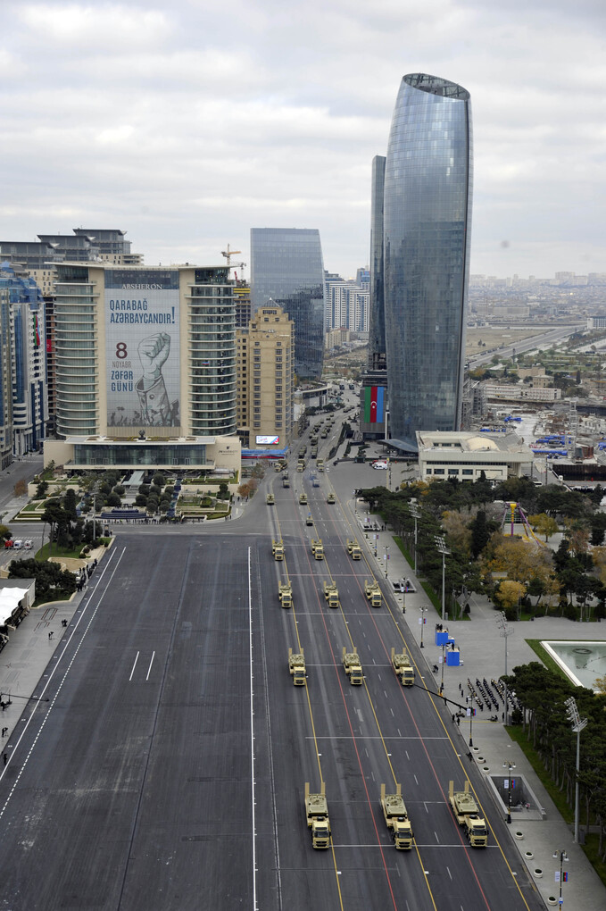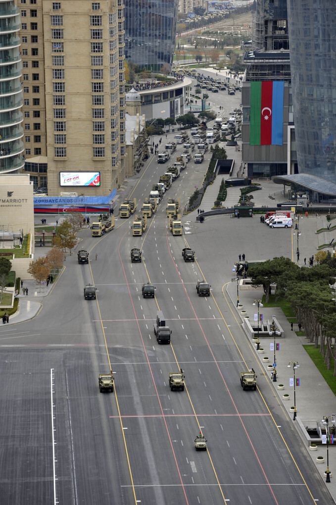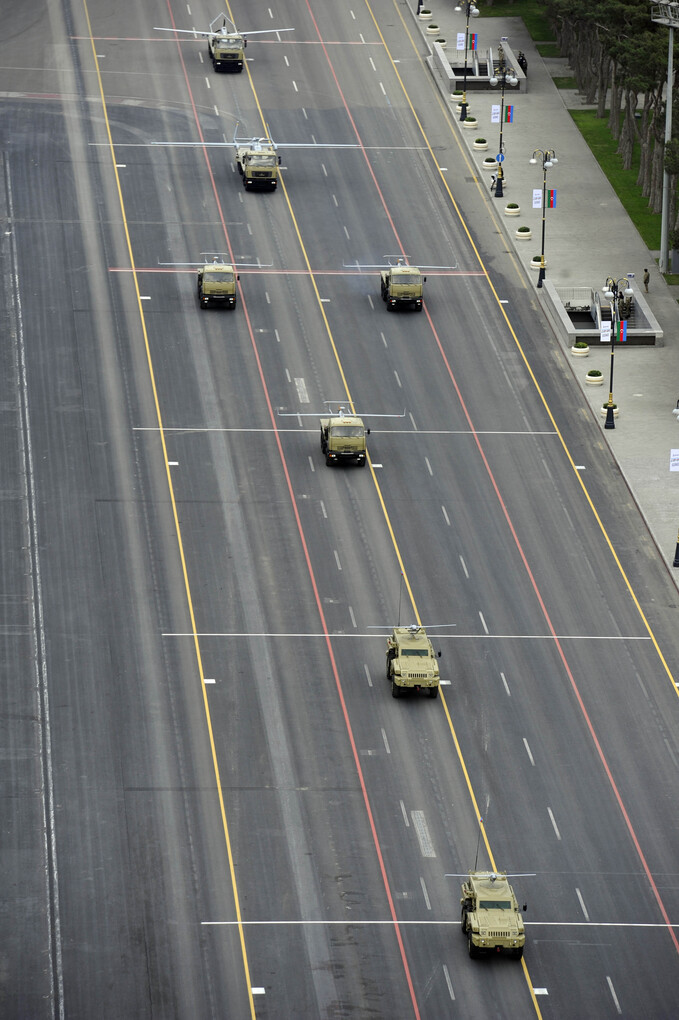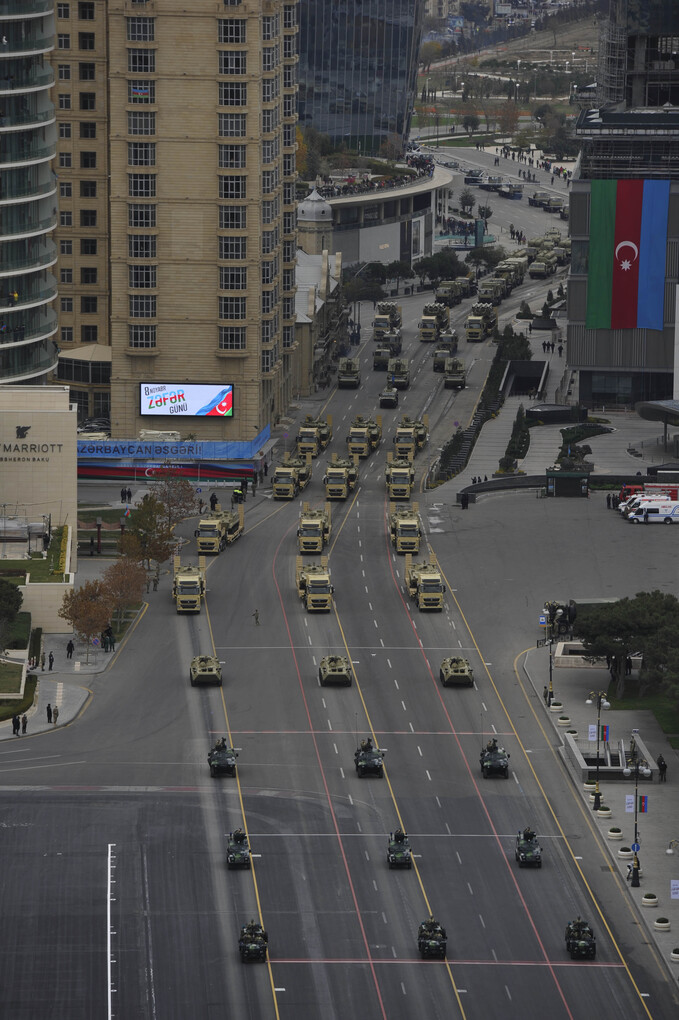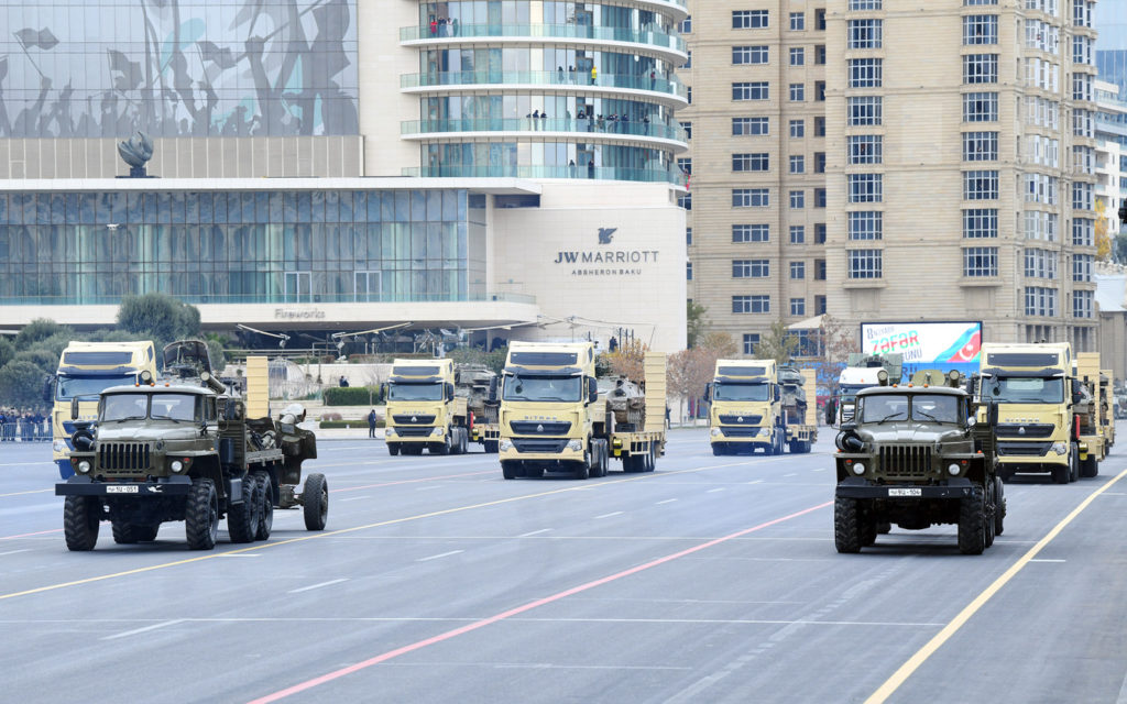 Bundan sonra xüsusi təyinatlı avtomobil, zirehli texnika və silah sistemləri kolonu Azadlıq meydanına daxil oldu. Kolona “Qarabağ” ordenli general-leytenant Nizam Osmanov başçılıq edirdi.