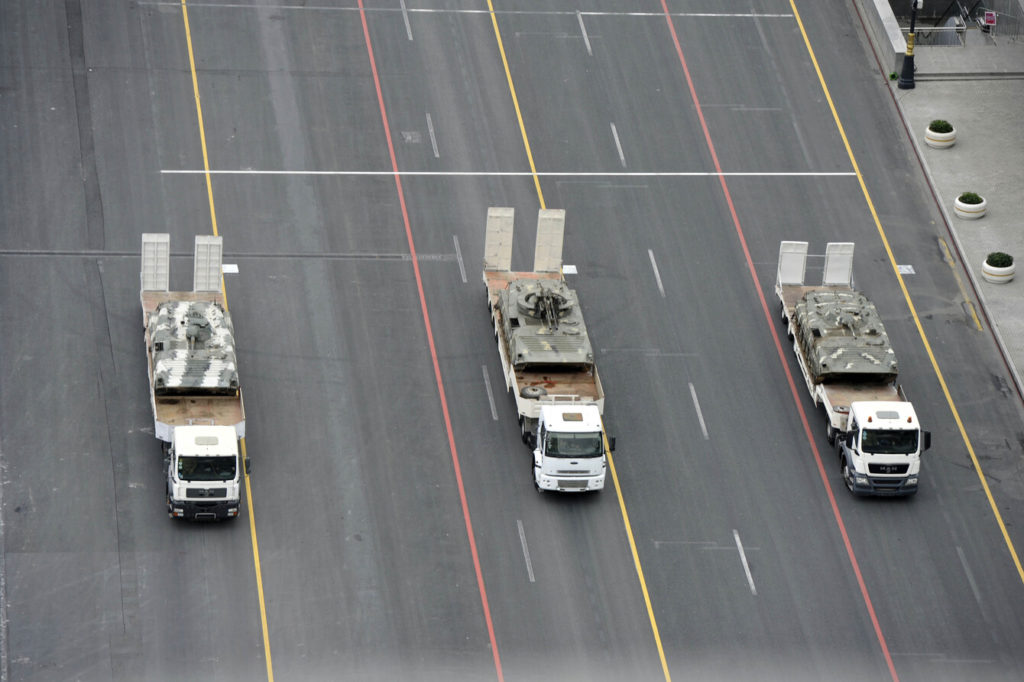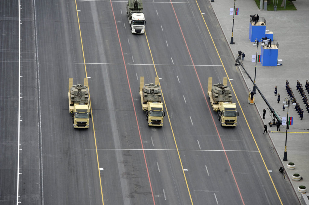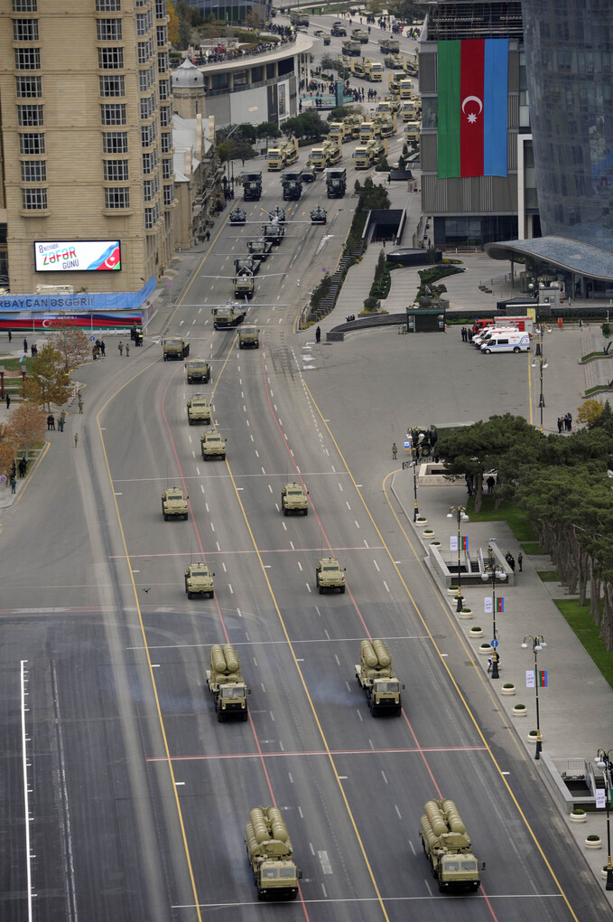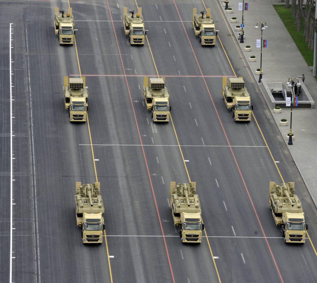 Bundan sonra xüsusi təyinatlı avtomobil, zirehli texnika və silah sistemləri kolonu Azadlıq meydanına daxil oldu. Kolona “Qarabağ” ordenli general-leytenant Nizam Osmanov başçılıq edirdi.