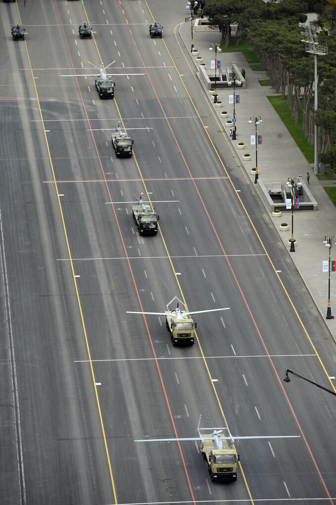 Daha sonra Azadlıq meydanında Hava Hücumundan Müdafiə silahları sistemləri kolonunun keçidi oldu. Kolona müdafiə nazirinin müavini – Hərbi Hava Qüvvələrinin komandanı, “Zəfər” ordenli general-leytenant Ramiz Tahirov başçılıq edirdi. Tribuna önündən modernləşdirilmiş “OSA-1T”, “S-125 TM”, “BUK-MB”, “İldırım” zenit-raket komplekslərinin, “S-300 Favorit” sistemlərinin keçidi oldu. Ardınca Vətən müharibəsində Qələbənin əldə edilməsində çox mühüm rol oynayan “Orbiter-1KM” – “İti qovan”, “Orbiter-2B”, “Orbiter-3B”, “Orbiter-4”, “Aerostar–BP”, “Heron” pilotsuz uçuş aparatları (PUA), eləcə də ən müasir PUA-lar – “Bayraktar-TB2”, habelə “Hermes-450”, “Hermes-900”, “Quzğun” və “Harop” PUA-ları nümayiş olundu.