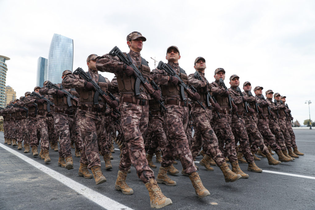 Dövlət Sərhəd Xidmətinin parad heyətləri general-mayor Rəsul Tağıyevin, Daxili İşlər Nazirliyinin Daxili Qoşunlarının parad heyəti general-mayor İnqilab Muradovun, Azərbaycan Respublikası Prezidentinin Təhlükəsizlik Xidmətinin Milli Qvardiyasının hərbi qulluqçularından ibarət parad heyəti isə mayor Eldar Quliyevin rəhbərliyi ilə mətin addımlarla Azadlıq meydanına daxil oldular.