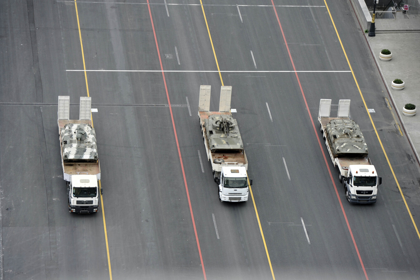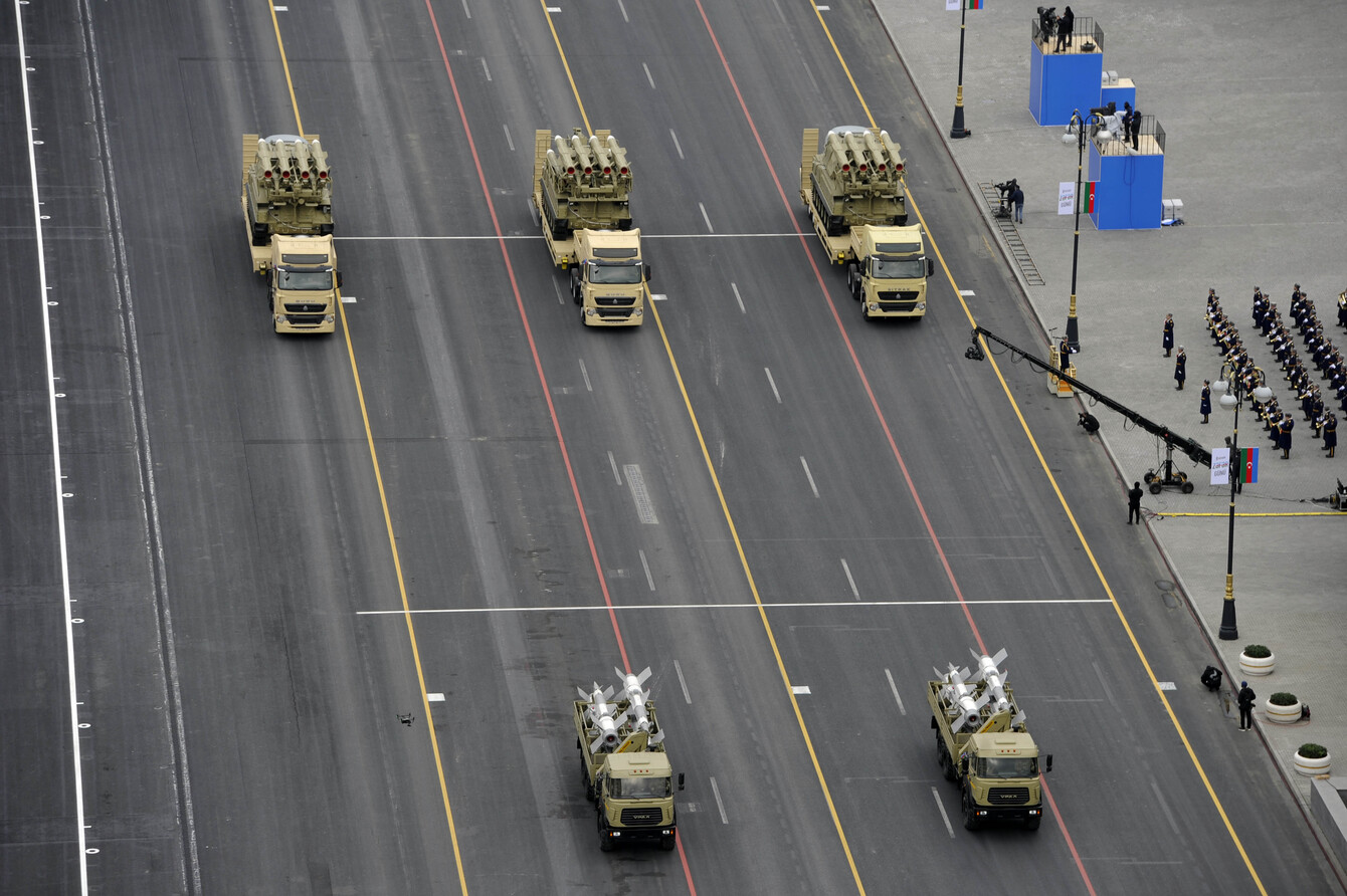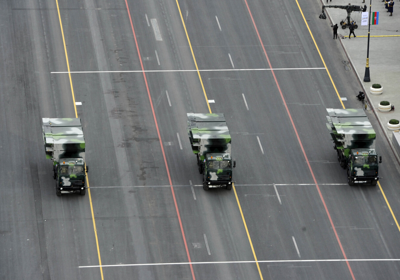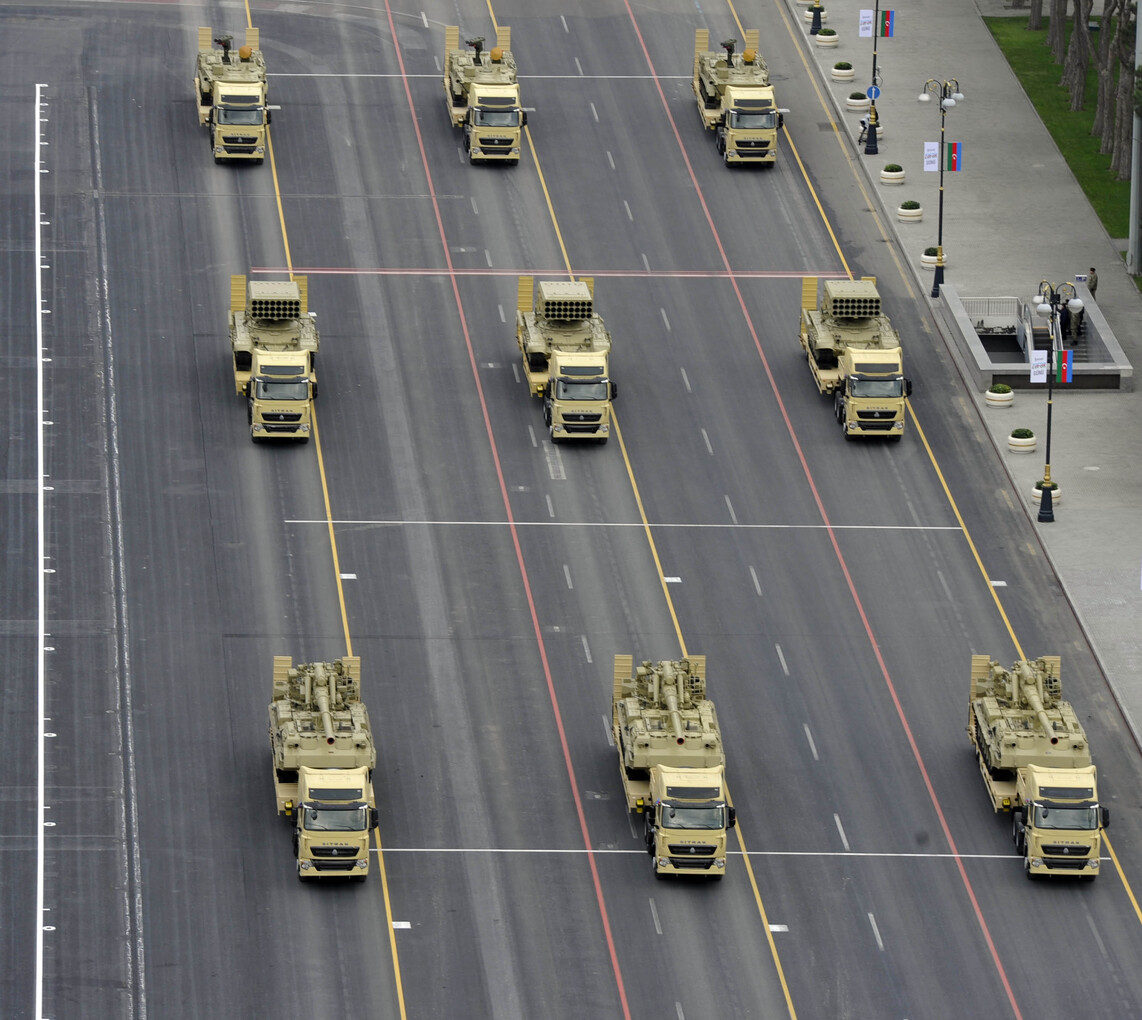 Azadlıq meydanında keçid edən, üzərində 12,7 millimetrlik NSV pulemyotları, tank əleyhinə idarə olunan “SPIKE-ER”, “NLOS”, “LAHAT” raketləri, 120 millimetrlik “SPEAR” minaatanlar quraşdırılan “SandCat-Stormer” zirehli idarəetmə, çevik hərəkət maşınları, piyada daşıyan zirehli maşınlar, “Kobra” və “BTR-82A” zirehli transportyorları, PDM-2 və PDM-3 texnikaları, “T-72”, “T-90S” tankları Azərbaycan Ordusunun hərbi qüdrətini nümayiş etdirdi.