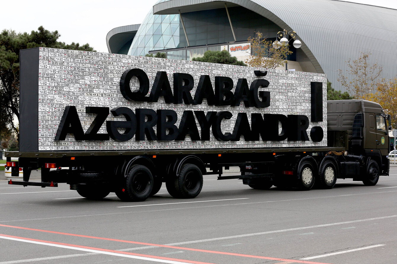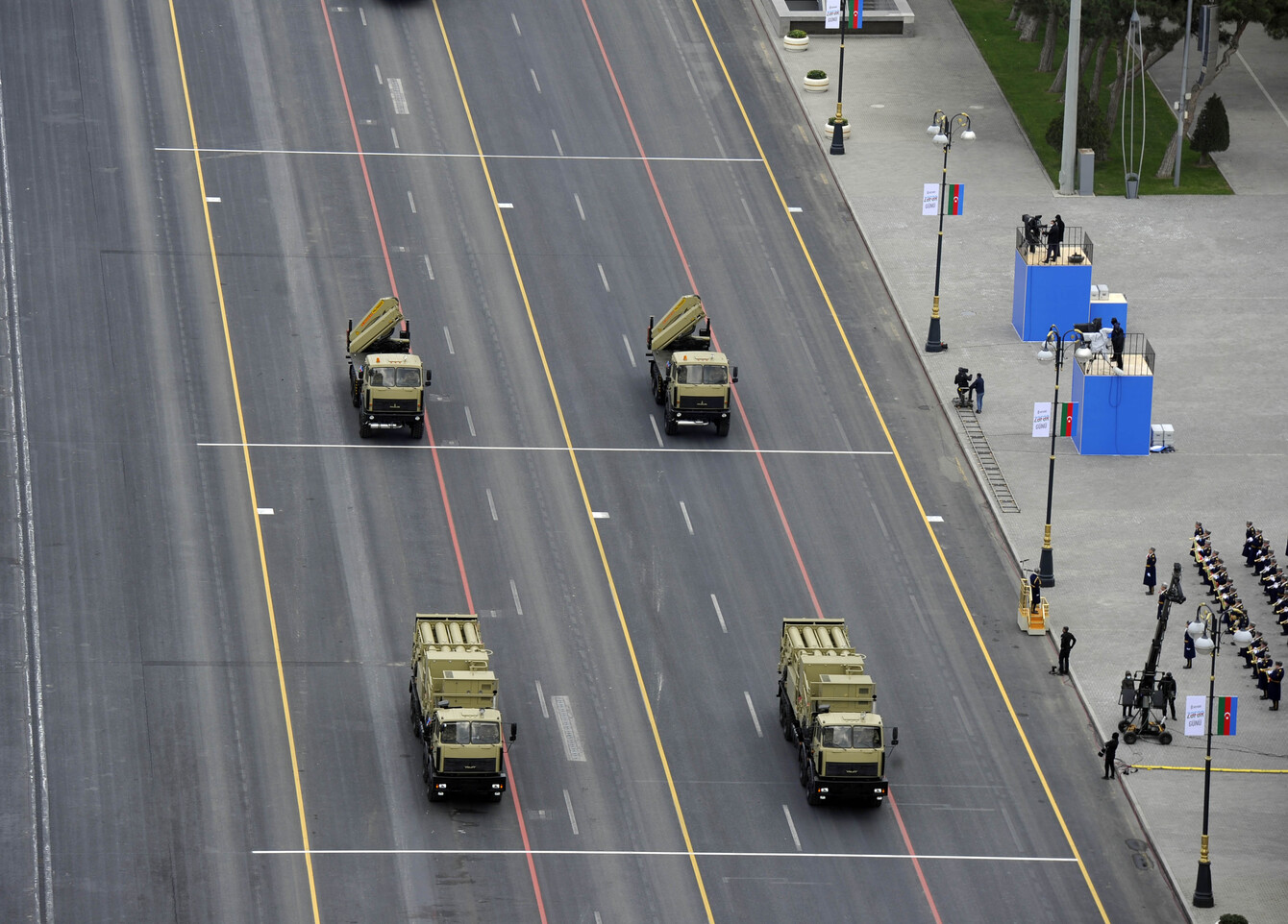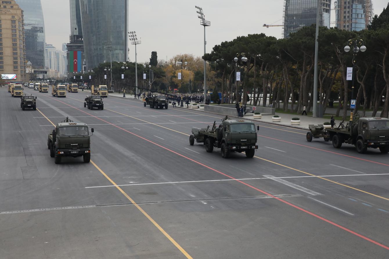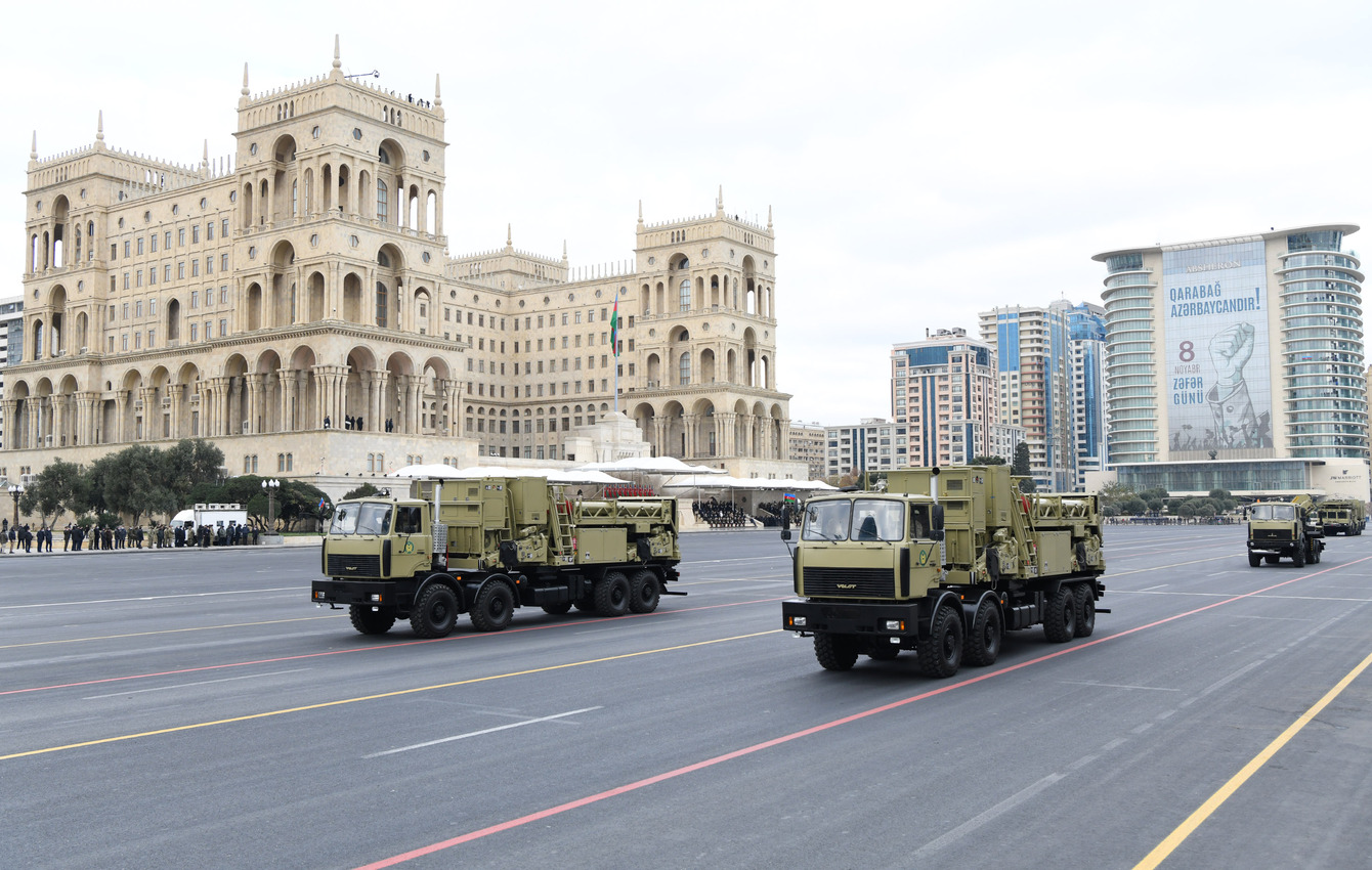Bundan sonra xüsusi təyinatlı avtomobil, zirehli texnika və silah sistemləri kolonu Azadlıq meydanına daxil oldu. Kolona “Qarabağ” ordenli general-leytenant Nizam Osmanov başçılıq edirdi.