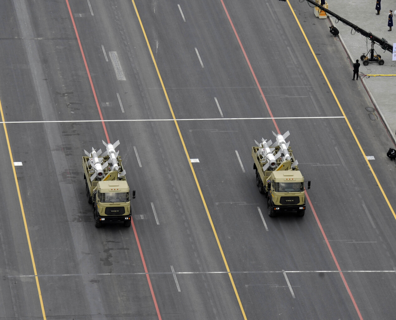 Daha sonra Azadlıq meydanında Hava Hücumundan Müdafiə silahları sistemləri kolonunun keçidi oldu. Kolona müdafiə nazirinin müavini – Hərbi Hava Qüvvələrinin komandanı, “Zəfər” ordenli general-leytenant Ramiz Tahirov başçılıq edirdi. Tribuna önündən modernləşdirilmiş “OSA-1T”, “S-125 TM”, “BUK-MB”, “İldırım” zenit-raket komplekslərinin, “S-300 Favorit” sistemlərinin keçidi oldu. Ardınca Vətən müharibəsində Qələbənin əldə edilməsində çox mühüm rol oynayan “Orbiter-1KM” – “İti qovan”, “Orbiter-2B”, “Orbiter-3B”, “Orbiter-4”, “Aerostar–BP”, “Heron” pilotsuz uçuş aparatları (PUA), eləcə də ən müasir PUA-lar – “Bayraktar-TB2”, habelə “Hermes-450”, “Hermes-900”, “Quzğun” və “Harop” PUA-ları nümayiş olundu.