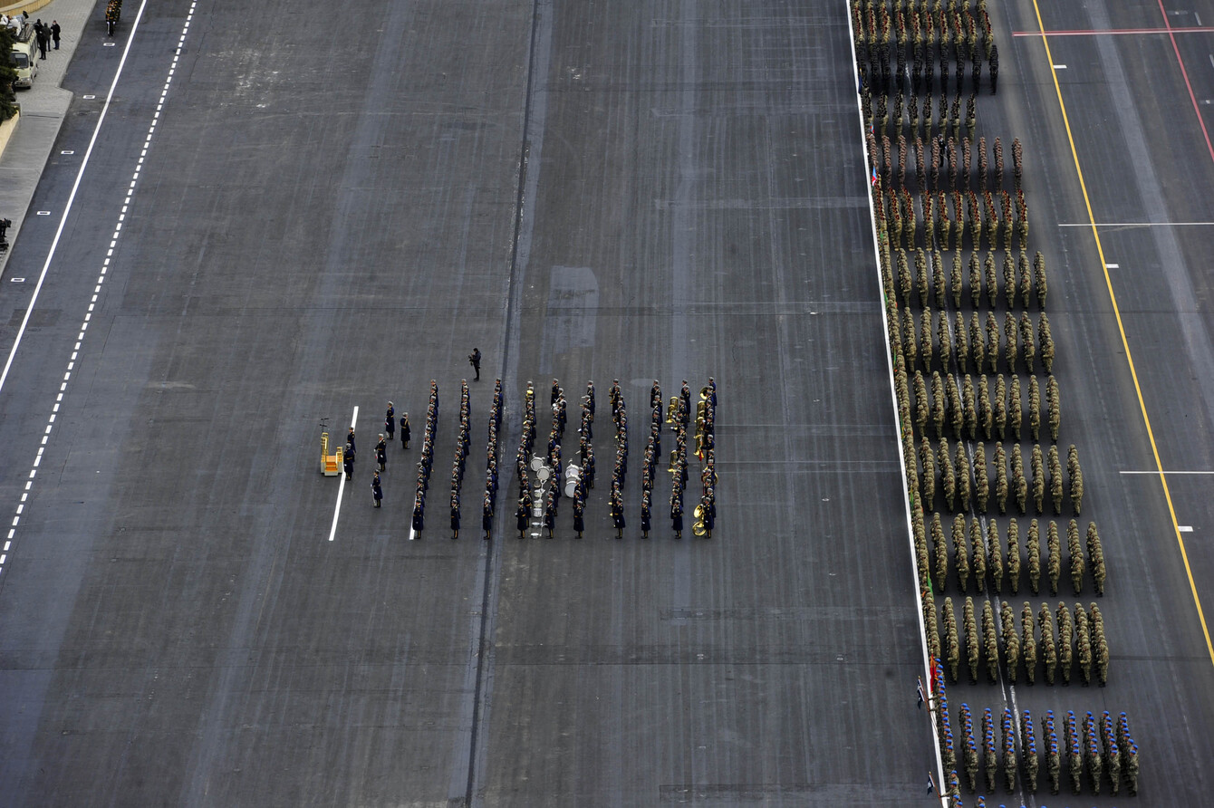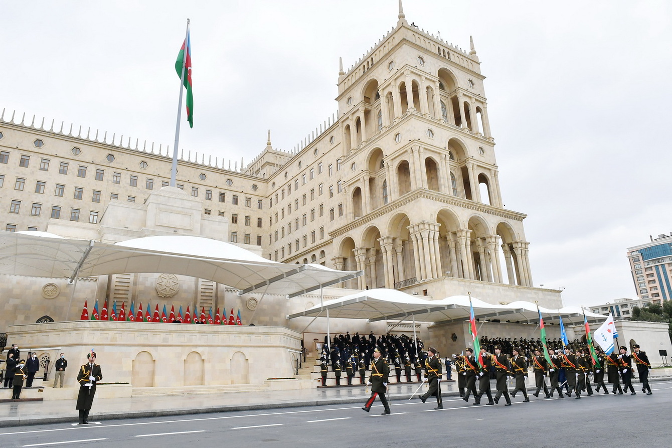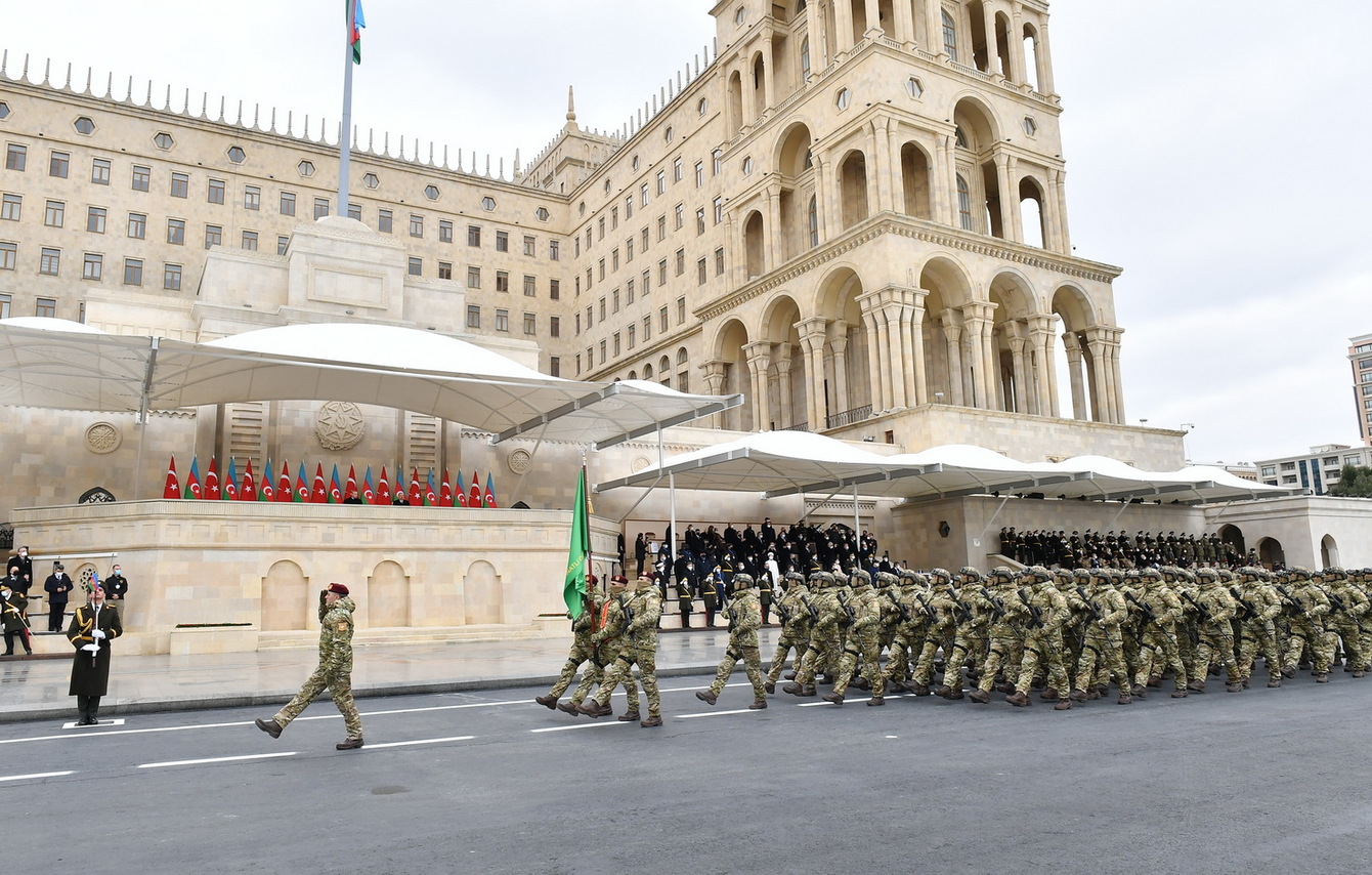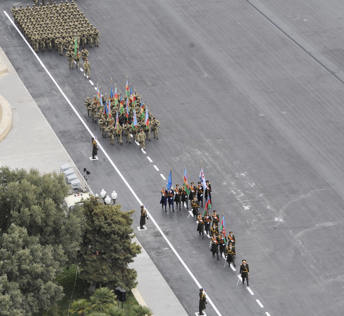 Sonra general-mayor Füzuli Salahovun rəhbərliyi ilə Heydər Əliyev adına Azərbaycan Ali Hərbi Məktəbinin parad heyəti, general-mayor Bəkir Orucovun başçılığı ilə Cəmşid Naxçıvanski adına Hərbi Liseyin kursant və zabitlərinin keçidi oldu.